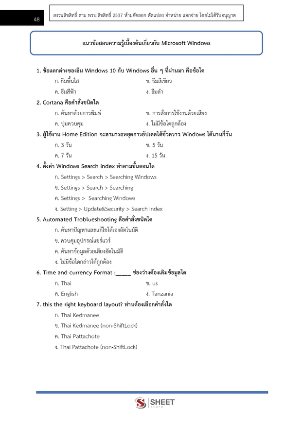 – แนวข้อสอบ การใช้คอมพิวเตอร์ Microsoft Windows