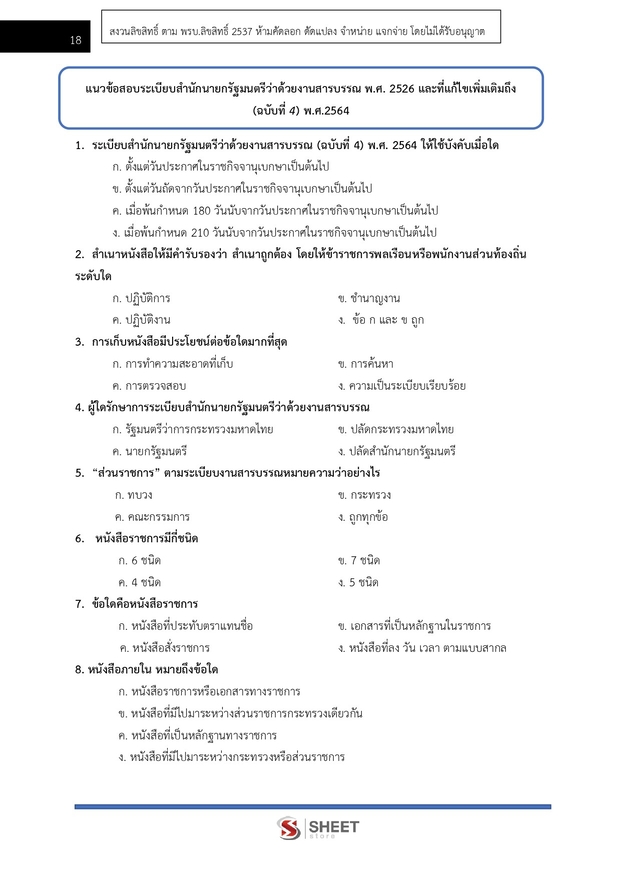 – แนวข้อสอบ พระราชกฤษฎีกาว่าด้วยหลักเกณฑ์ และวิธีการบริหารบ้านเมืองที่ดี พ.ศ. 2546 และที่แก้ไขเพิ่มเติมถึง (ฉบับที่ 2) พ.ศ. 2562