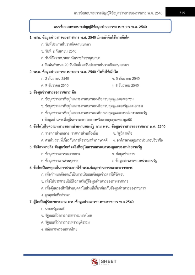 – แนวข้อสอบ สรุปสาระสำคัญพระราชบัญญัติข้อมูลข่าวสารของราชการ พ.ศ. 2540