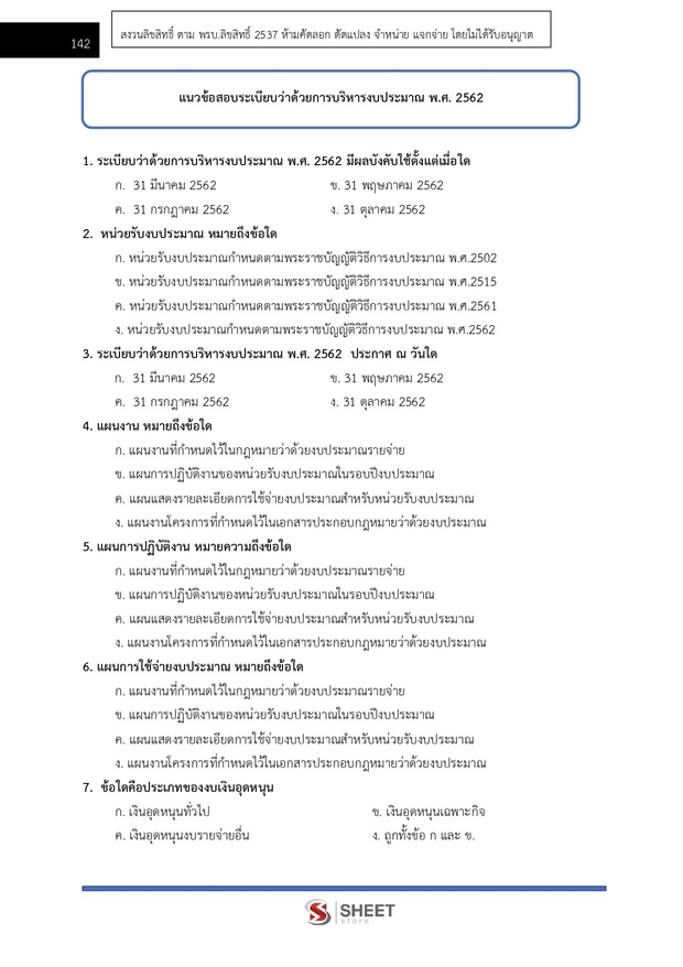 – แนวข้อสอบระเบียบว่าด้วยการบริหารงบประมาณ พ.ศ. 2562