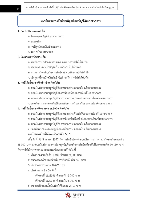 – แนวข้อสอบการจัดทำงบพิสูจน์ยอดบัญชีเงินฝากธนาคาร