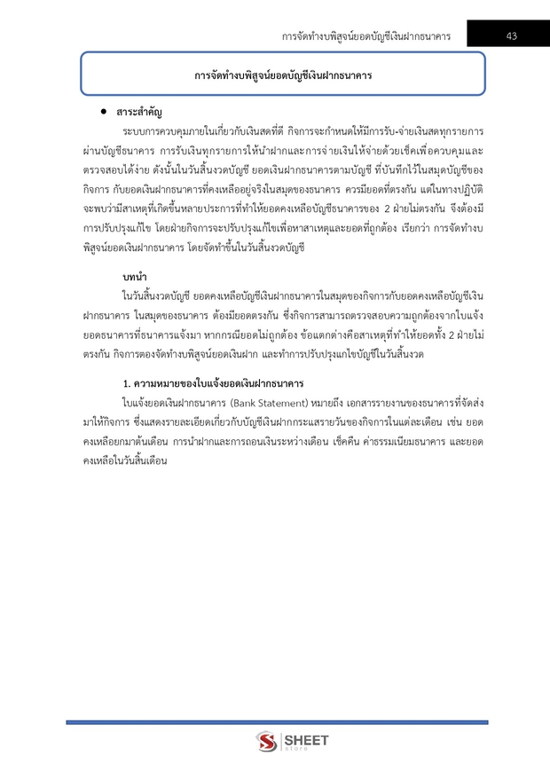 – การจัดทำงบพิสูจน์ยอดบัญชีเงินฝากธนาคาร