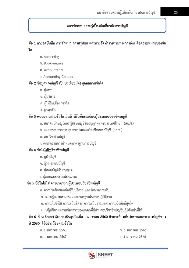 – แนวข้อสอบความรู้เกี่ยวกับการบัญชีเบื้องต้น
