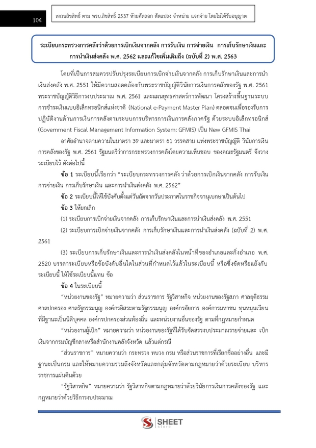– แนวข้อสอบระเบียบกระทรวงการคลังว่าด้วยการเบิกเงินจากคลัง การรับเงิน การจ่ายเงิน การเก็บรักษาเงินและการนำเงินส่งคลัง พ.ศ. 2562 และที่แก้ไขเพิ่มเติมถึง (ฉบับที่ 2) พ.ศ. 2563