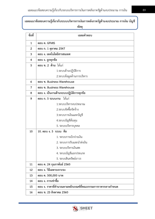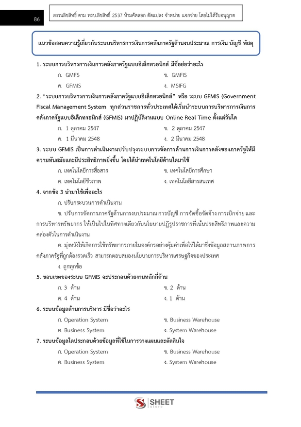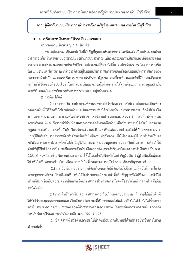 – แนวข้อสอบความรู้เกี่ยวกับระบบบริหารการเงินการคลังภาครัฐด้านงบประมาณ การเงิน บัญชี พัสดุ