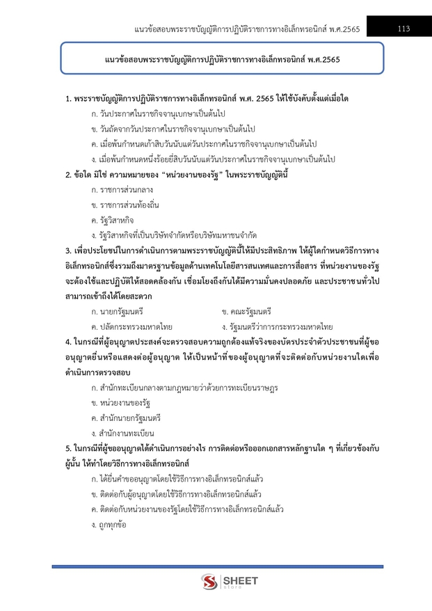 – แนวข้อสอบพระราชบัญญัติการปฏิบัติราชการทางอิเล็กทรอนิกส์ พ.ศ. 2565