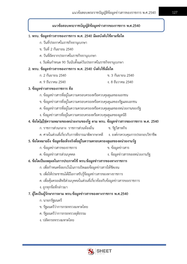 – แนวข้อสอบพระราชบัญญัติข้อมูลข่าวสารของราชการ พ.ศ. 2540