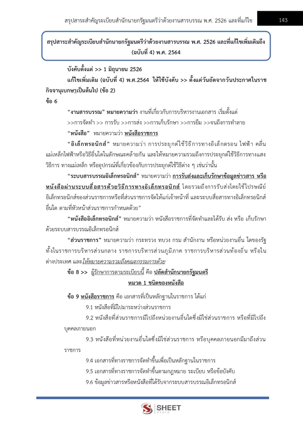 – แนวข้อสอบระเบียบสำนักนายกรัฐมนตรีว่าด้วยงานสารบรรณ พ.ศ. 2526 และที่แก้ไขเพิ่มเติมถึง (ฉบับที่ 4) พ.ศ. 2564