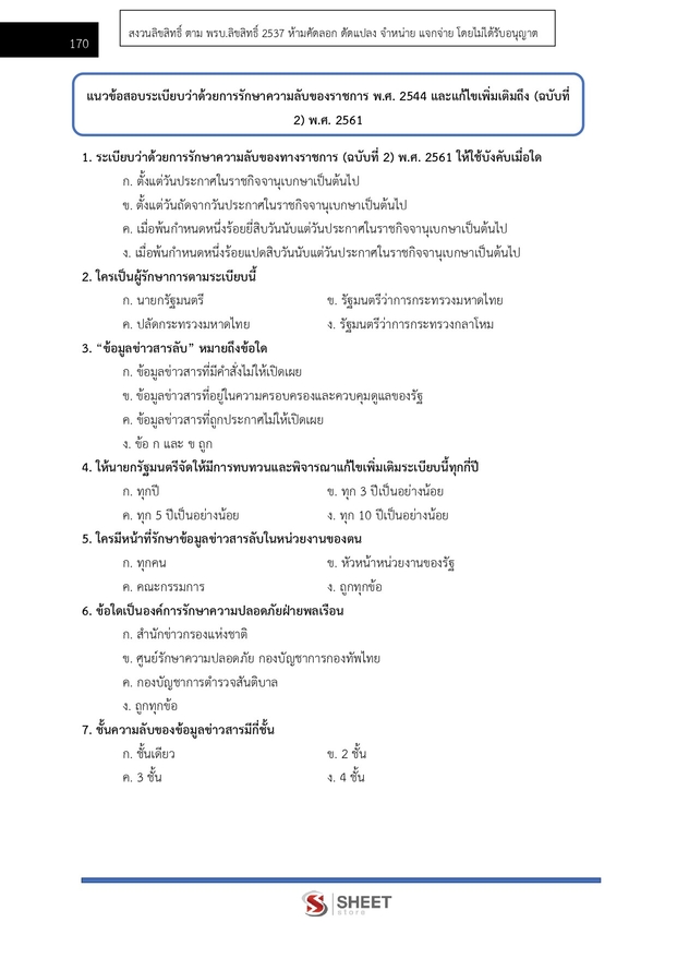 – แนวข้อสอบระเบียบว่าด้วยการรักษาความลับของราชการ พ.ศ. 2544 และแก้ไขเพิ่มเติม (ฉบับที่ 2) พ.ศ. 2561