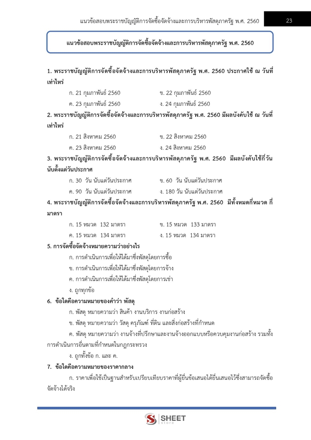 – แนวข้อสอบพระราชบัญญัติการจัดซื้อจัดจ้างและการบริหารพัสดุภาครัฐ พ.ศ. 2560
