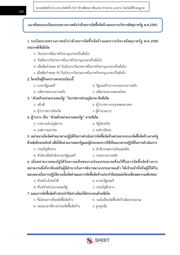 – แนวข้อสอบสรุปสาระสำคัญระเบียบกระทรวงการคลังว่าด้วยการจัดซื้อจัดจ้างและการบริหารพัสดุภาครัฐ พ.ศ. 2560