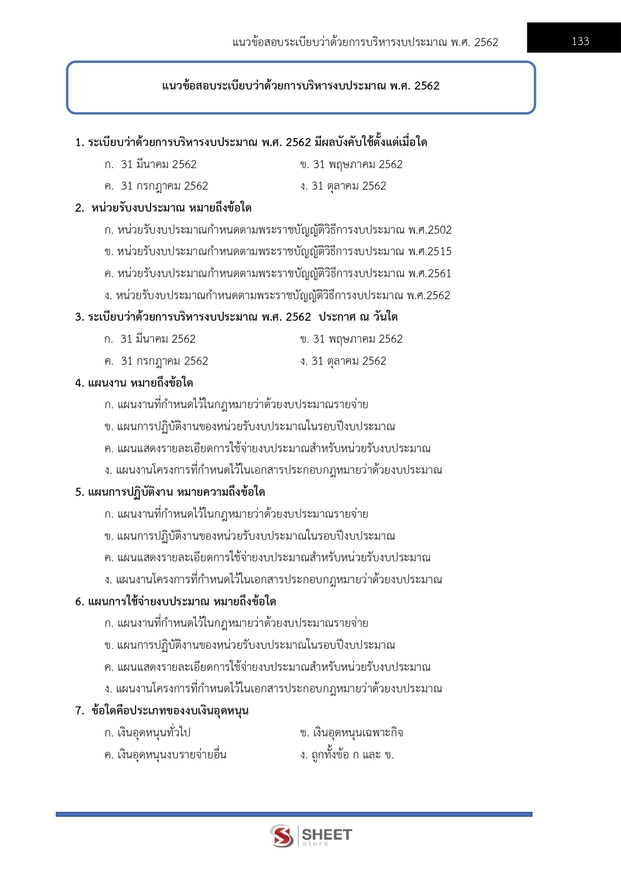 – แนวข้อสอบระเบียบว่าด้วยการบริหารงบประมาณ พ.ศ. 2562
