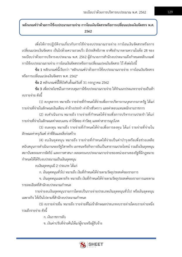 – ระเบียบว่าด้วยการบริหารงบประมาณ พ.ศ. 2562