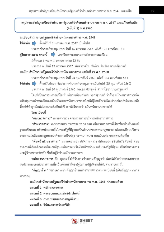 – แนวข้อสอบสรุปสาระสำคัญระเบียบสำนักนายกรัฐมนตรีว่าด้วยพนักงานราชการ พ.ศ. 2547 และแก้ไขเพิ่มเติม (ฉบับที่ 2) พ.ศ. 2560