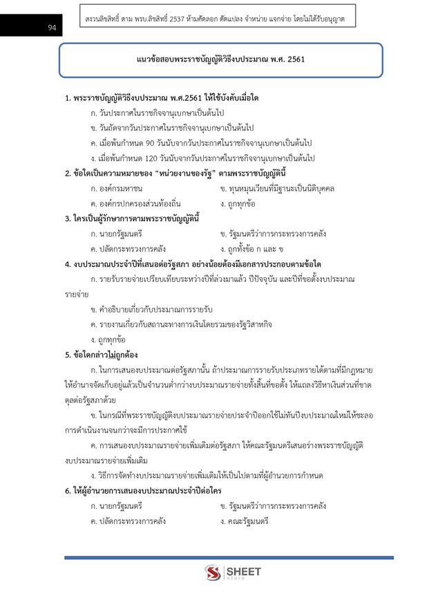 – แนวข้อสอบพระราชบัญญัติวิธีการงบประมาณ พ.ศ. 2561