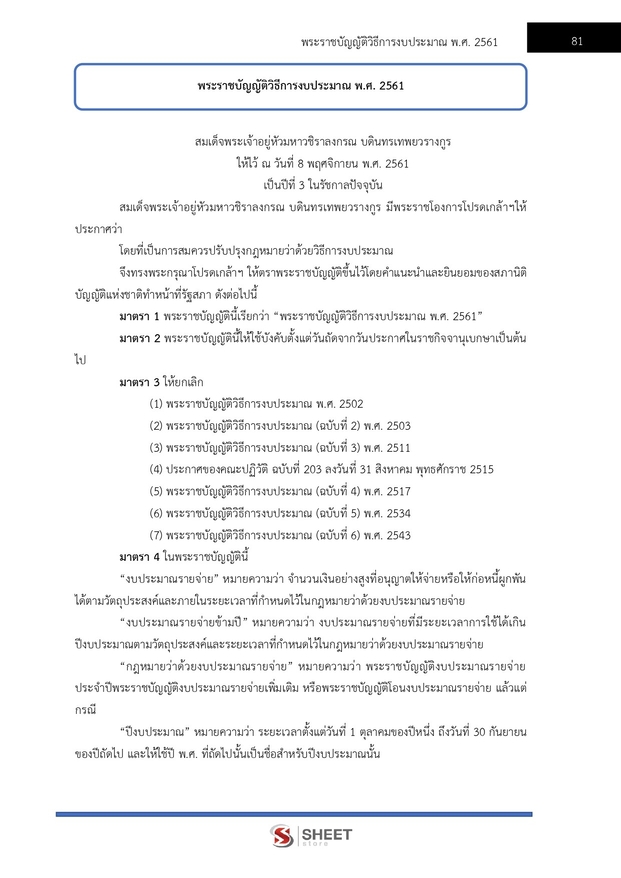 – พระราชบัญญัติวิธีการงบประมาณ พ.ศ. 2561