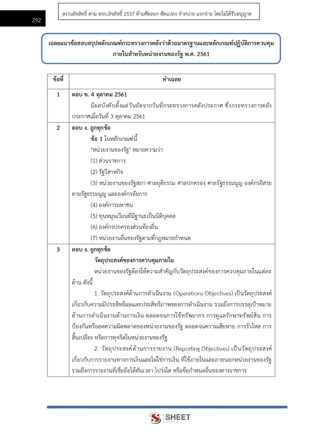 – แนวข้อสอบสรุปหลักเกณฑ์กระทรวงการคลังว่าด้วยมาตรฐานและหลักเกณฑ์ปฏิบัติการควบคุมภายในสำหรับหน่วยงานของรัฐ พ.ศ. 2561