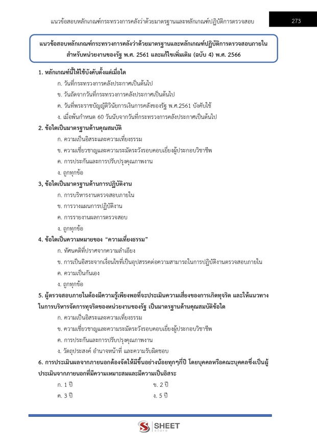 – แนวข้อสอบหลักเกณฑ์กระทรวงการคลังว่าด้วยมาตรฐานและหลักเกณฑ์ปฏิบัติการตรวจสอบภายในสำหรับหน่วยงานของรัฐ พ.ศ. 2561 และแก้ไขเพิ่มเติม (ฉบับ 4) พ.ศ. 2566