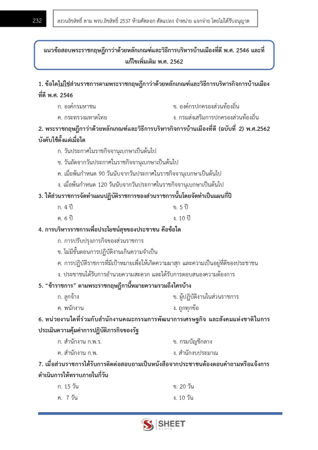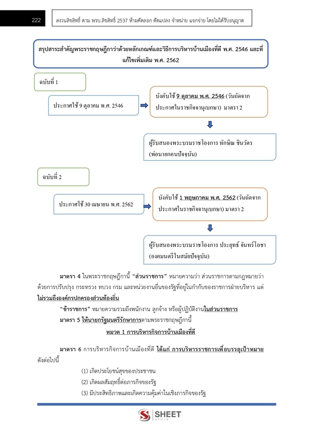 – แนวข้อสอบสรุปสาระสำคัญพระราชกฤษฎีกาว่าด้วยหลักเกณฑ์และวิธีการบริหารกิจการบ้านเมืองที่ดี พ.ศ. 2546 และที่แก้ไขเพิ่มเติมถึง (ฉบับที่ 2) พ.ศ. 2562