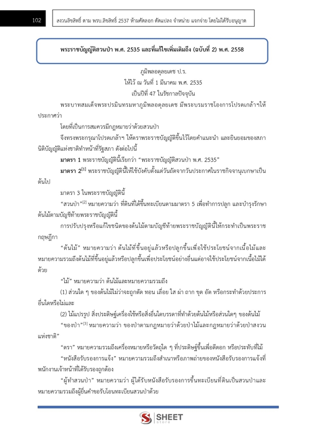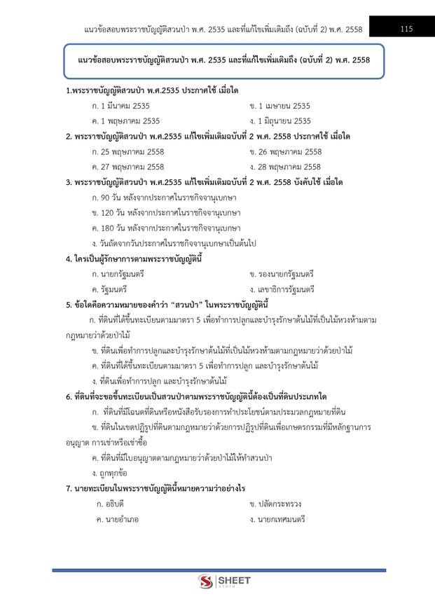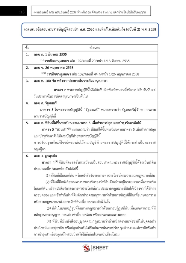 – แนวข้อสอบพระราชบัญญัติสวนป่า พ.ศ. 2535 และที่แก้ไขเพิ่มเติมถึง (ฉบับที่ 2) พ.ศ. 2558