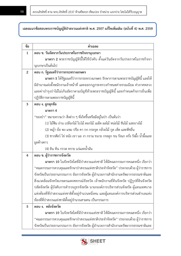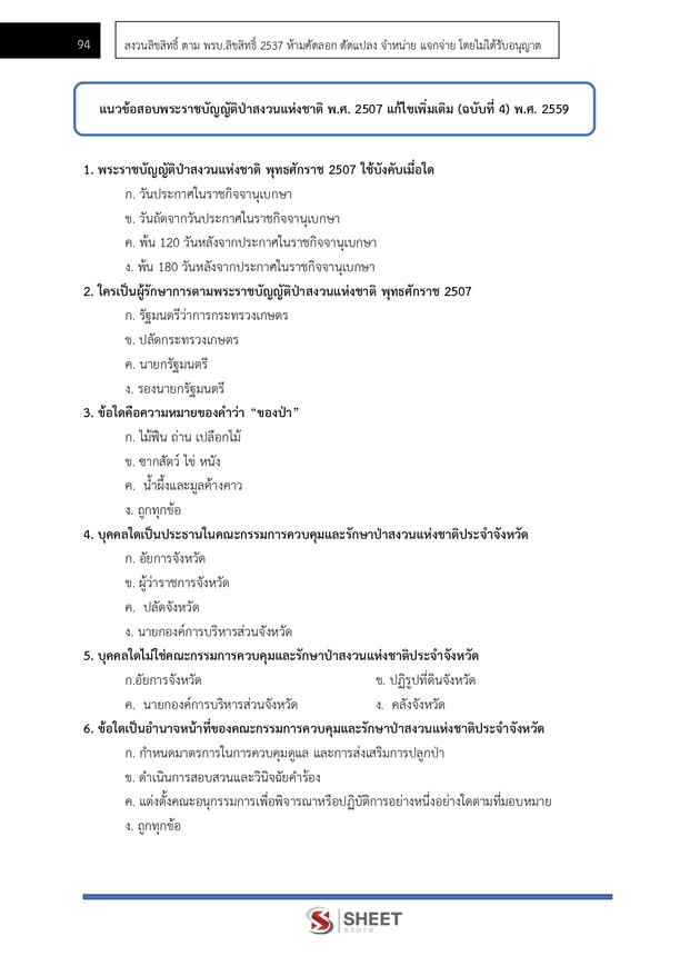 – แนวข้อสอบพระราชบัญญัติป่าสงวนแห่งชาติ พ.ศ. 2507 และแก้ไขเพิ่มเติม (ฉบับที่ 4) พ.ศ. 2559