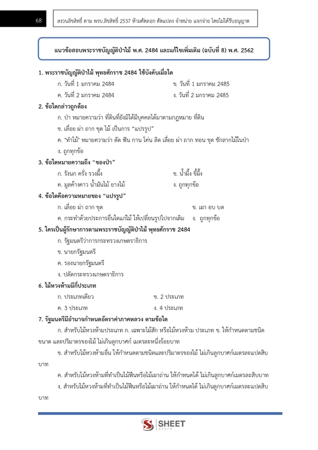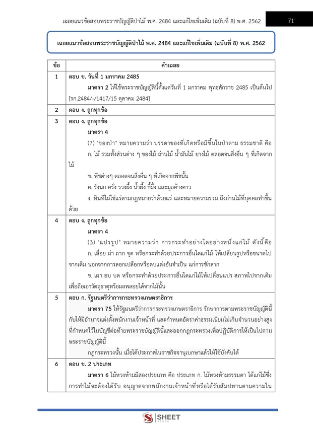 – แนวข้อสอบพระราชบัญญัติป่าไม้ พ.ศ. 2484 และแก้ไขเพิ่มเติม (ฉบับที่ 8) พ.ศ. 2562