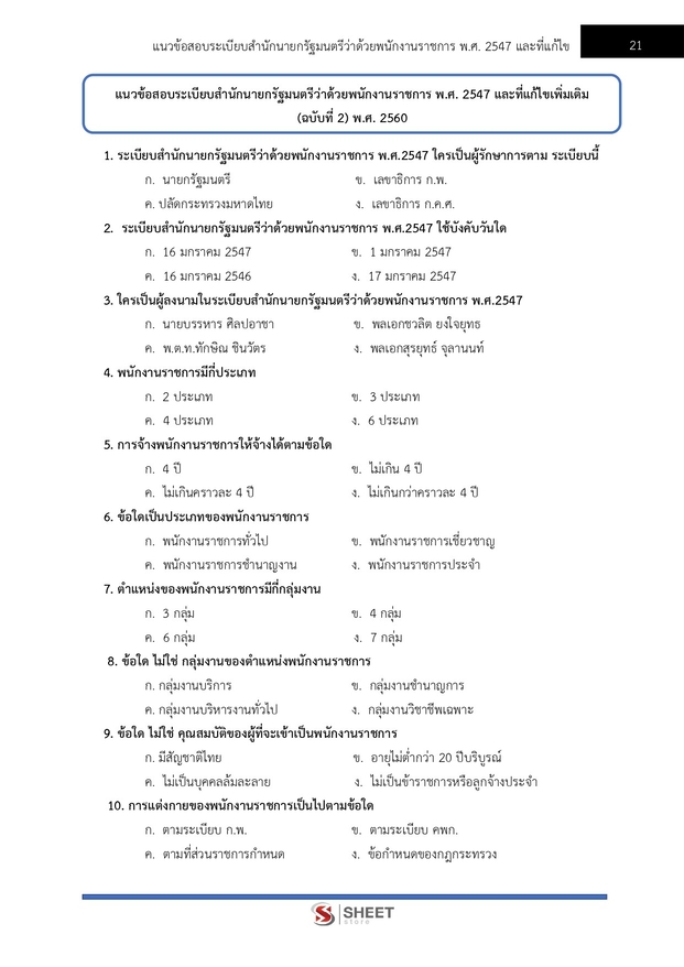 – แนวข้อสอบสรุปสาระสำคัญระเบียบสำนักนายกรัฐมนตรีว่าด้วยพนักงานราชการ พ.ศ. 2547 และแก้ไขเพิ่มเติม (ฉบับที่ 2) พ.ศ. 2560