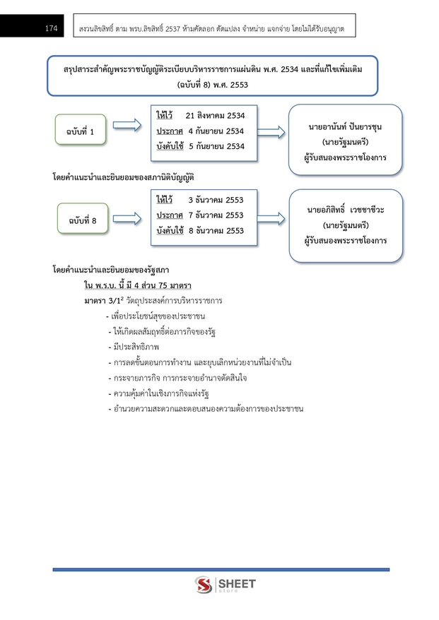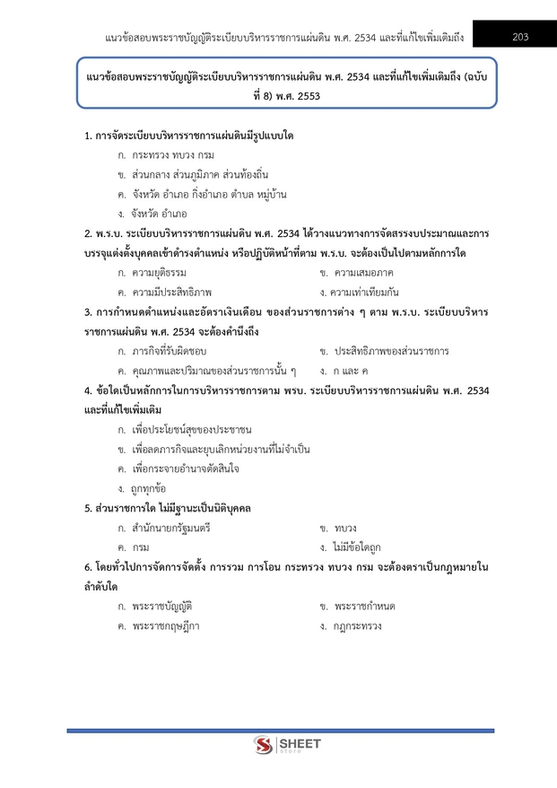 – แนวข้อสอบสรุปสาระสำคัญพระราชบัญญัติระเบียบบริหารราชการแผ่นดิน พ.ศ. 2534 และที่แก้ไขเพิ่มเติม (ฉบับที่ 8) พ.ศ. 2553