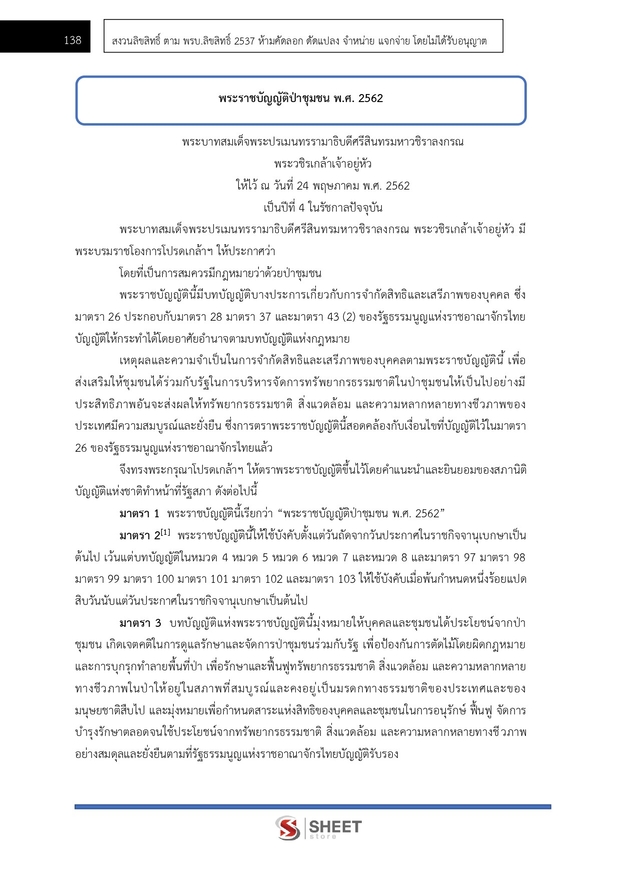 – พระราชบัญญัติป่าชุมชน พ.ศ. 2562