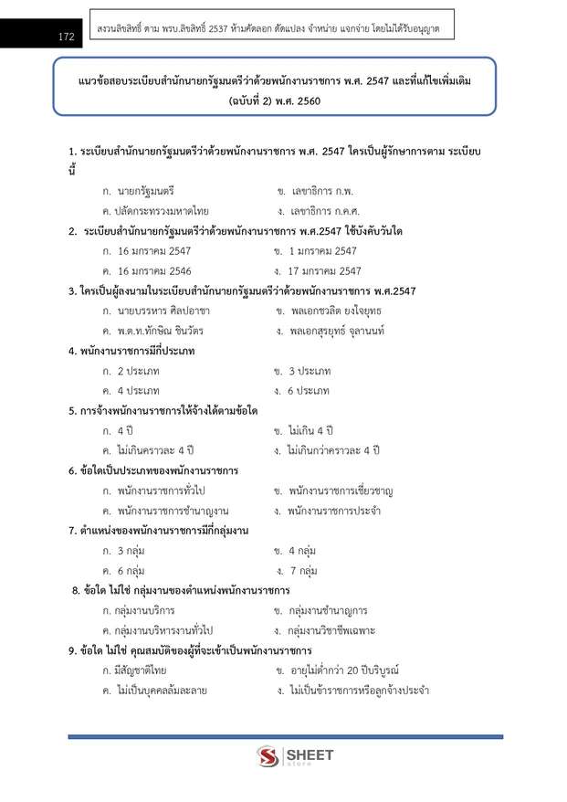 -แนวข้อสอบสรุปสาระสำคัญระเบียบสำนักนายกรัฐมนตรีว่าด้วยพนักงานราชการ พ.ศ. 2547 และแก้ไขเพิ่มเติม (ฉบับที่ 2) พ.ศ. 2560
