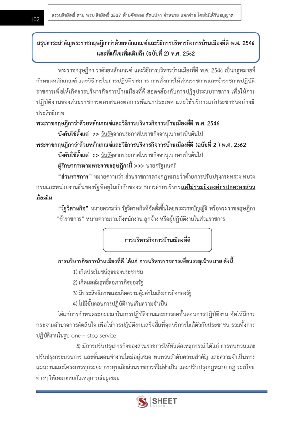 -แนวข้อสอบสรุปสาระสำคัญพระราชกฤษฎีกาว่าด้วยหลักเกณฑ์และวิธีการบริหารกิจการบ้านเมืองที่ดี พ.ศ. 2546 และที่แก้ไขเพิ่มเติมถึง (ฉบับที่ 2) พ.ศ. 2562
