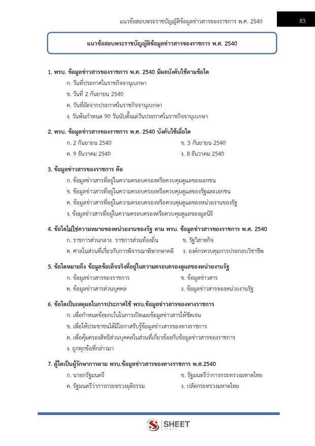 -แนวข้อสอบสรุปสาระสำคัญพระราชบัญญัติข้อมูลข่าวสารของราชการ พ.ศ. 2540