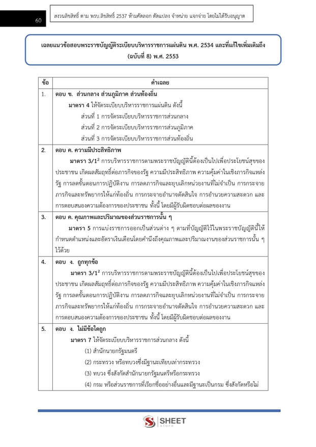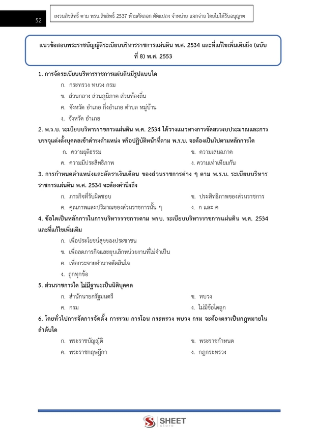 -แนวข้อสอบสรุปพระราชบัญญัติระเบียบบริหารราชการแผ่นดิน พ.ศ. 2534 และที่แก้ไขเพิ่มเติมถึง (ฉบับที่ 8) พ.ศ. 2553