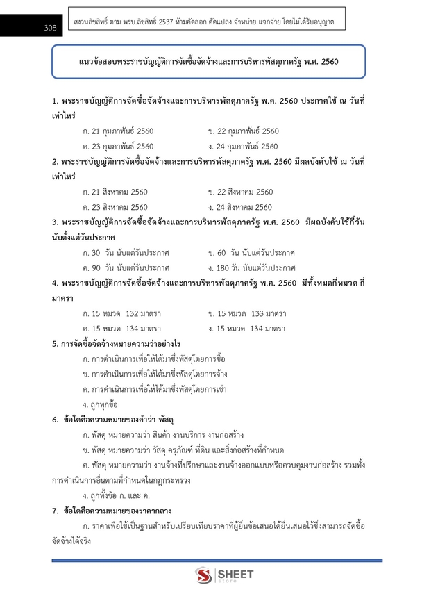 – แนวข้อสอบพระราชบัญญัติการจัดซื้อจัดจ้างและการบริหารพัสดุภาครัฐ พ.ศ. 2560