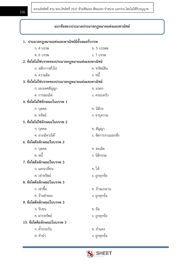 – แนวข้อสอบสรุปประมวลกฎหมายแพ่งและพาณิชย์