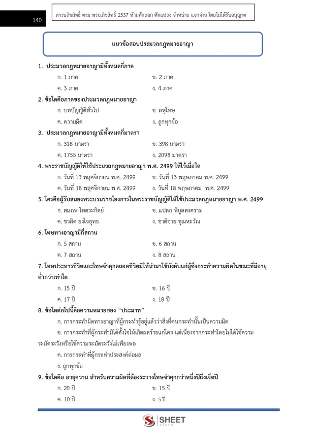 – แนวข้อสอบสรุปประมวลกฎหมายอาญา