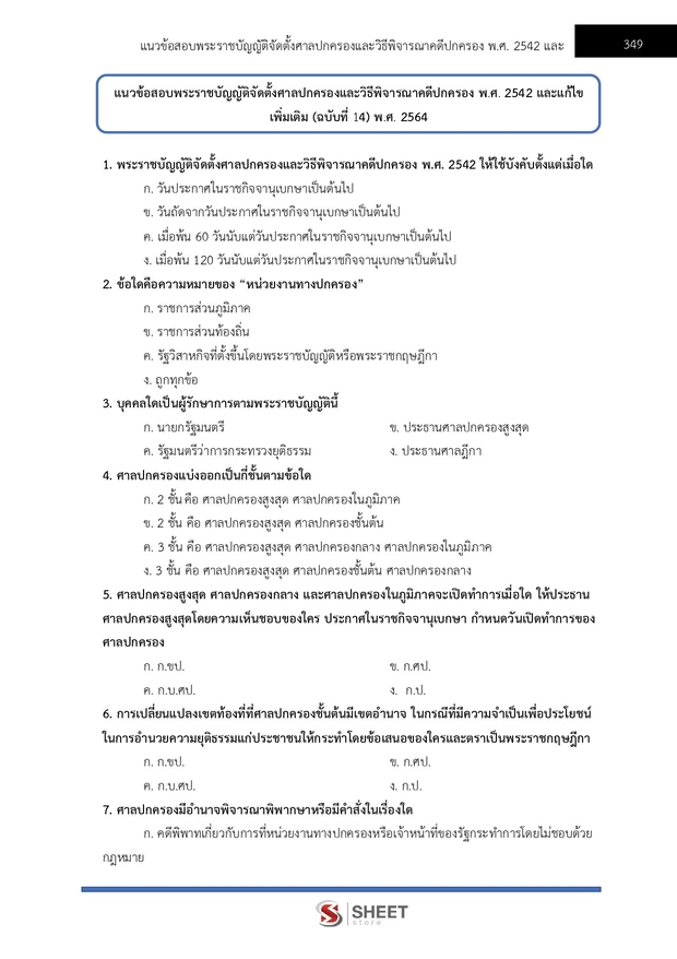 – แนวข้อสอบพระราชบัญญัติจัดตั้งศาลปกครองและวิธีพิจารณาคดีปกครอง พ.ศ. 2542 และแก้ไขเพิ่มเติม (ฉบับที่ 14) พ.ศ. 2564