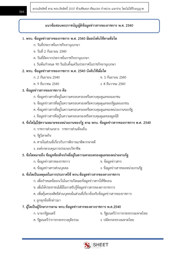 – แนวข้อสอบสรุปสาระสำคัญพระราชบัญญัติข้อมูลข่าวสาร พ.ศ. 2540