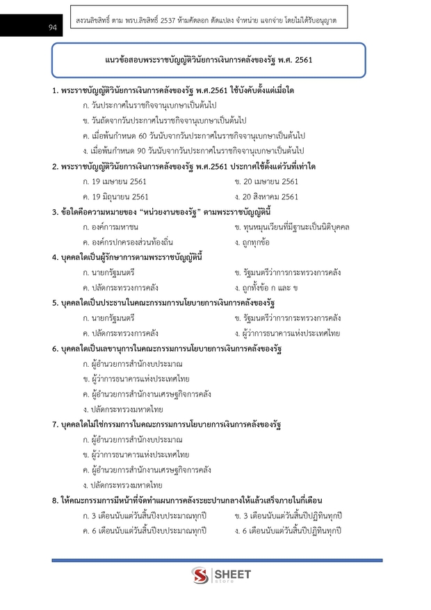 – แนวข้อสอบพระราชบัญญัติวินัยการเงินการคลังของรัฐ พ.ศ. 2561