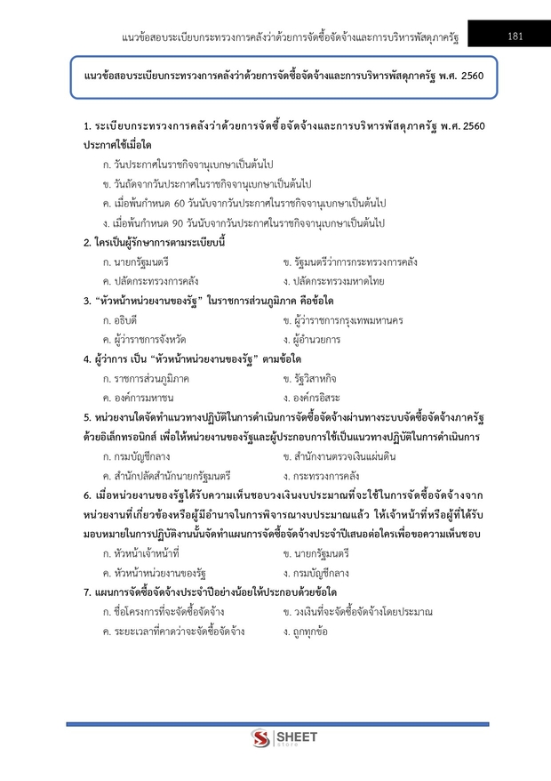 – แนวข้อสอบสรุปสาระสำคัญระเบียบกระทรวงการคลังว่าด้วยการจัดซื้อจัดจ้างและการบริหารพัสดุภาครัฐ พ.ศ. 2560