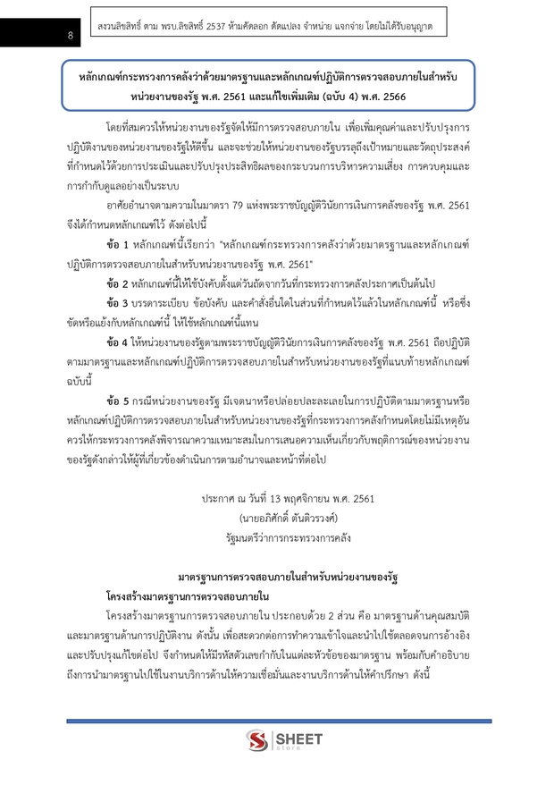– แนวข้อสอบหลักเกณฑ์กระทรวงการคลังว่าด้วยมาตรฐานและหลักเกณฑ์ปฏิบัติการตรวจสอบภายในสำหรับหน่วยงานของรัฐ พ.ศ. 2561 และแก้ไขเพิ่มเติม (ฉบับ 4) พ.ศ. 2566