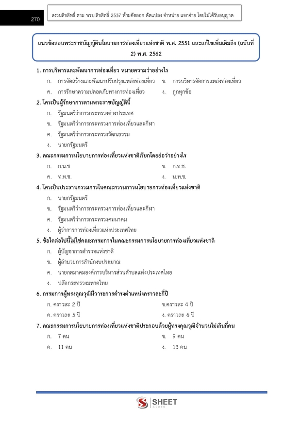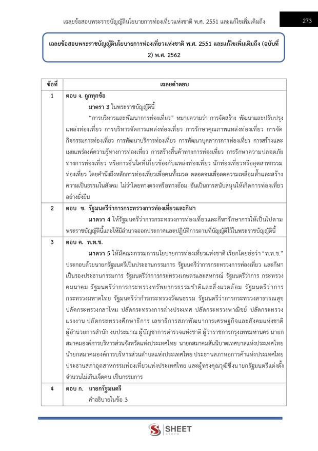 – แนวข้อสอบพระราชบัญญัตินโยบายการท่องเที่ยวแห่งชาติ พ.ศ. 2551 และที่แก้ไขเพิ่มเติม (ฉบับที่ 2) พ.ศ. 2562
