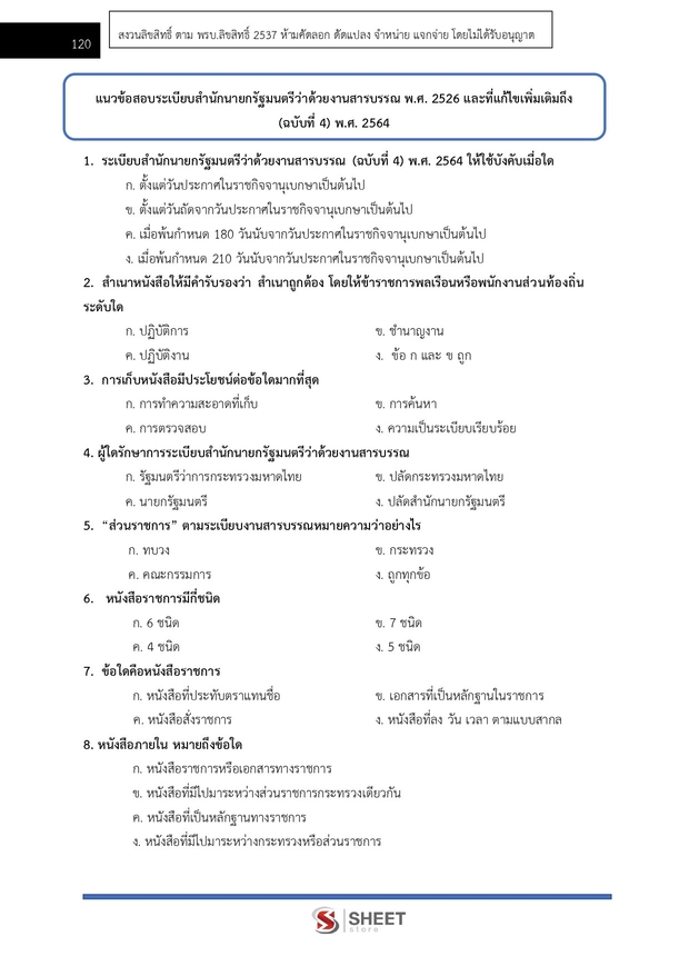 – แนวข้อสอบสรุปสาระสำคัญระเบียบสำนักนายกรัฐมนตรีว่าด้วยงานสารบรรณ พ.ศ. 2526 และที่แก้ไขเพิ่มเติมถึง (ฉบับที่ 4) พ.ศ. 2564