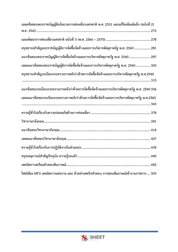 รายละเอียด สารบัญ แนวข้อสอบ เจ้าหน้าที่ประสานงานด้านการท่องเที่ยว การท่องเที่ยว 2568