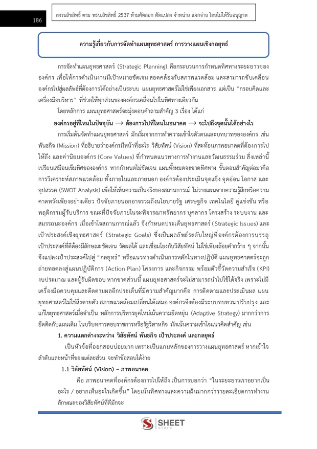 – แนวข้อสอบความรู้เกี่ยวกับการจัดทำแผนยุทธศาสตร์ การวางแผนเชิงกลยุทธ์