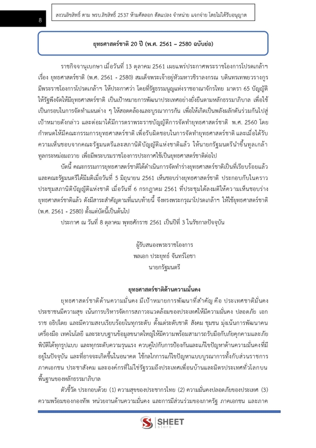 – แนวข้อสอบยุทธศาสตร์ชาติ 20 ปี (พ.ศ. 2561 – 2580 ฉบับย่อ)