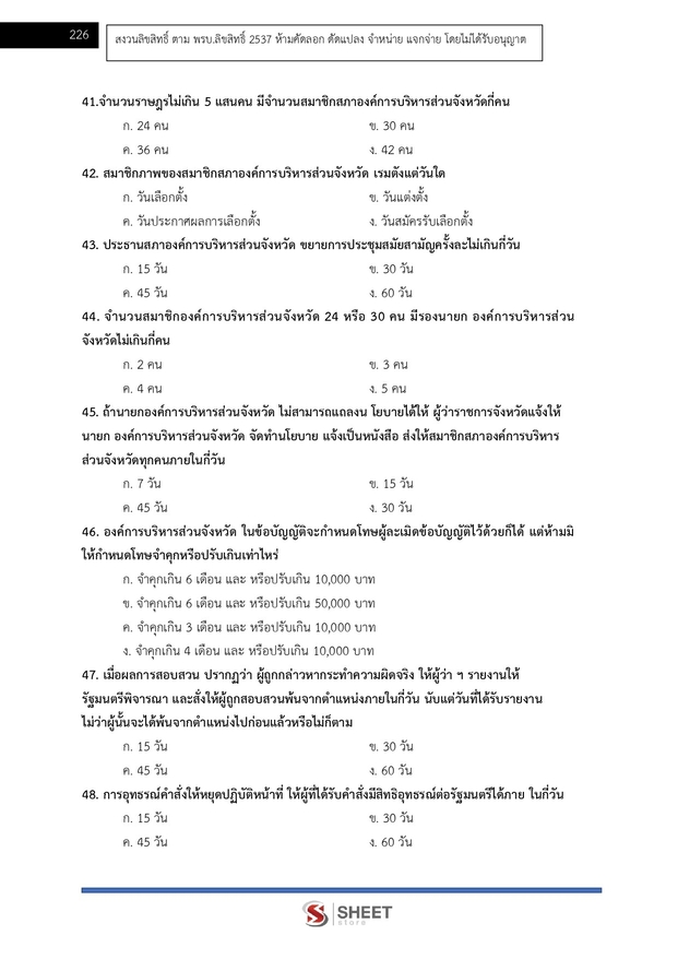 – แนวข้อสอบพระราชบัญญัติองค์การบริหารส่วนจังหวัด พ.ศ. 2540 และที่แก้ไขเพิ่มเติมถึง (ฉบับที่ 5) พ.ศ. 2562