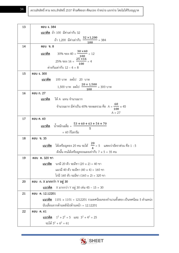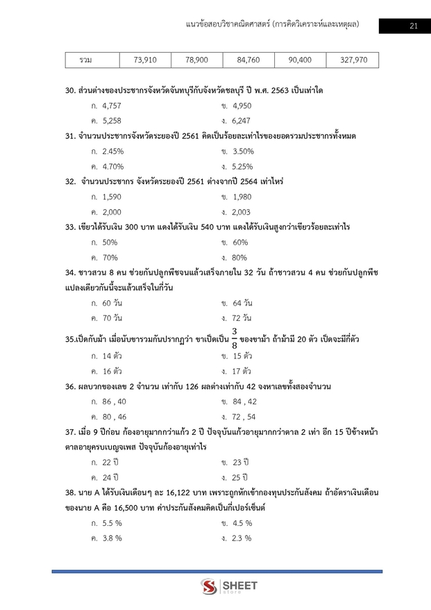 – แนวข้อสอบวิชาคณิตศาสตร์ วิเคราะห์และสรุปเหตุผล เฉลยพร้อมวิธีทำ