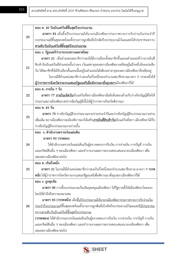 – แนวข้อสอบพระราชบัญญัติระเบียบบริหารราชการเมืองพัทยา พ.ศ. 2542 แก้ไขเพิ่มเติมถึง (ฉบับที่ 3) พ.ศ. 2562