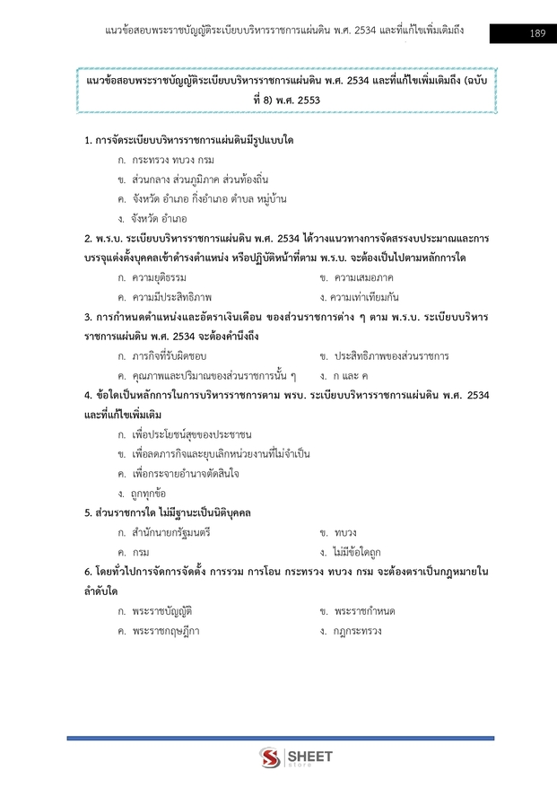 – แนวข้อสอบพระราชบัญญัติระเบียบบริหารราชการแผ่นดิน พ.ศ. 2534 และที่แก้ไขเพิ่มเติม (ฉบับที่ 8) พ.ศ. 2553
